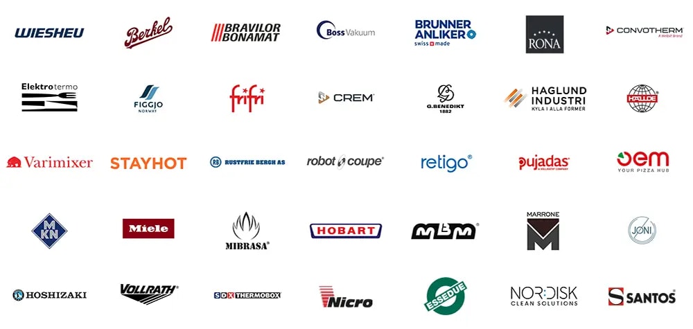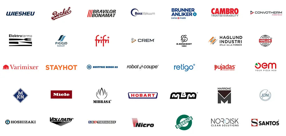 Vi forhandler de største merkevarene innen utstyr og maskiner til storkjøkken.