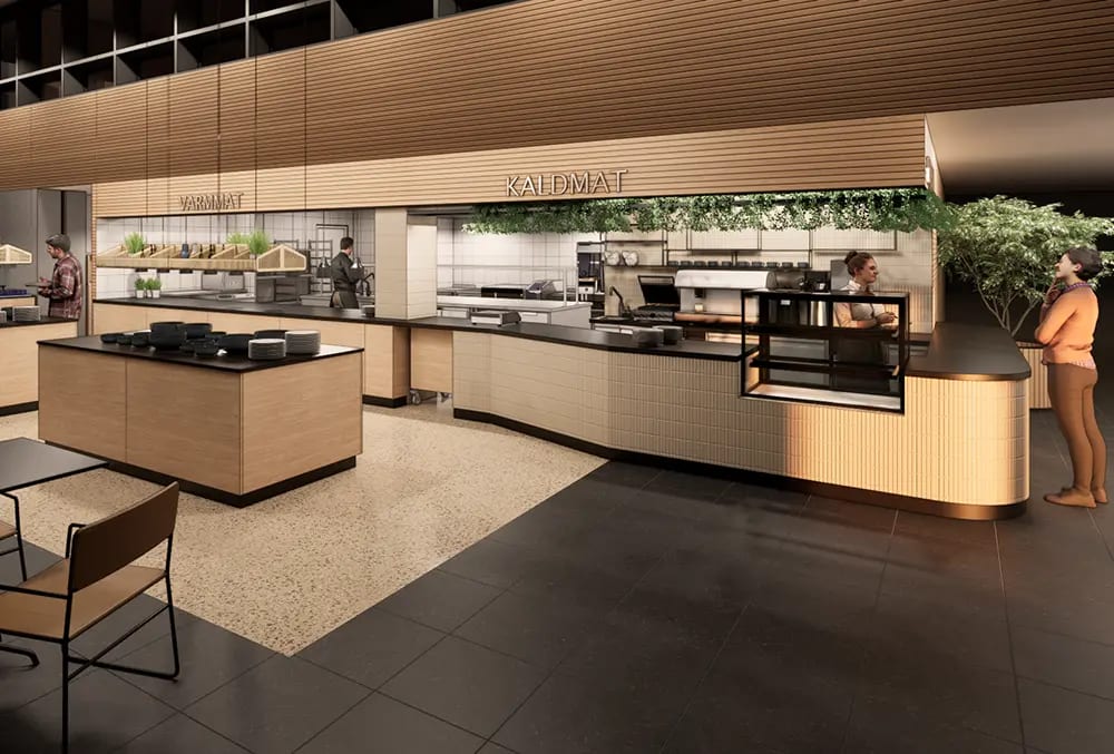 I dag utvikles den enkelte kantine i større grad som et eget konsept. Vi bidrar med tegnere og prosjektledere som hjelper deg med å utvikle og virkeliggjøre konseptet ditt. Gjennom 3D-visualiseringer og -tegninger får du et bedre bilde av hvordan ting vil bli seende ut, noe som gjør det lettere for deg å ta valg og vurderinger.