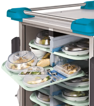 Ergoserv-vognen gjør det mulig å transportere mat mellom kjøkkenet og de forskjellige sykehusavdelingene eller restaurantene. Den er spesielt kompakt, lett og mobil, og sikrer enkel og diskret bevegelse på alle gulvflater.